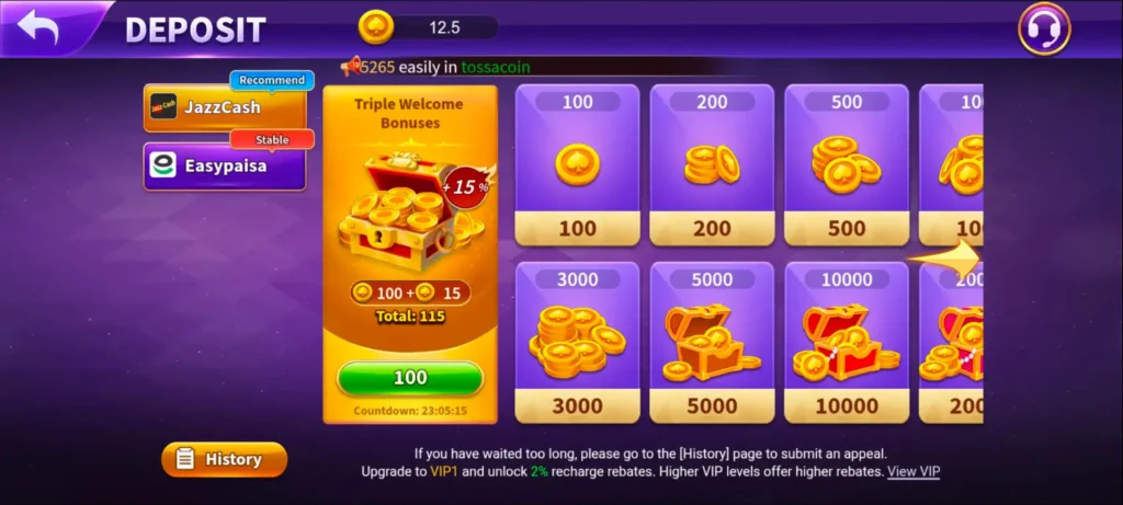 - Choose a deposit method such as easy paisa , jazz cash, bank transfer, debit card or other supported.