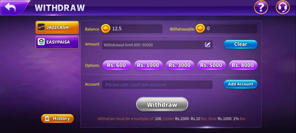 - Select your withdraw method (Bank , easy paisa, jazz cash)